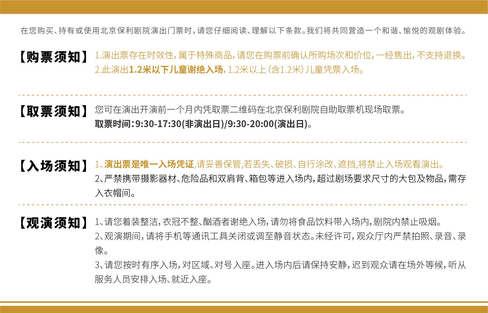 此演出1.2米以下儿童谢绝入场,1.2米以上(含1.2米)儿童凭票入场