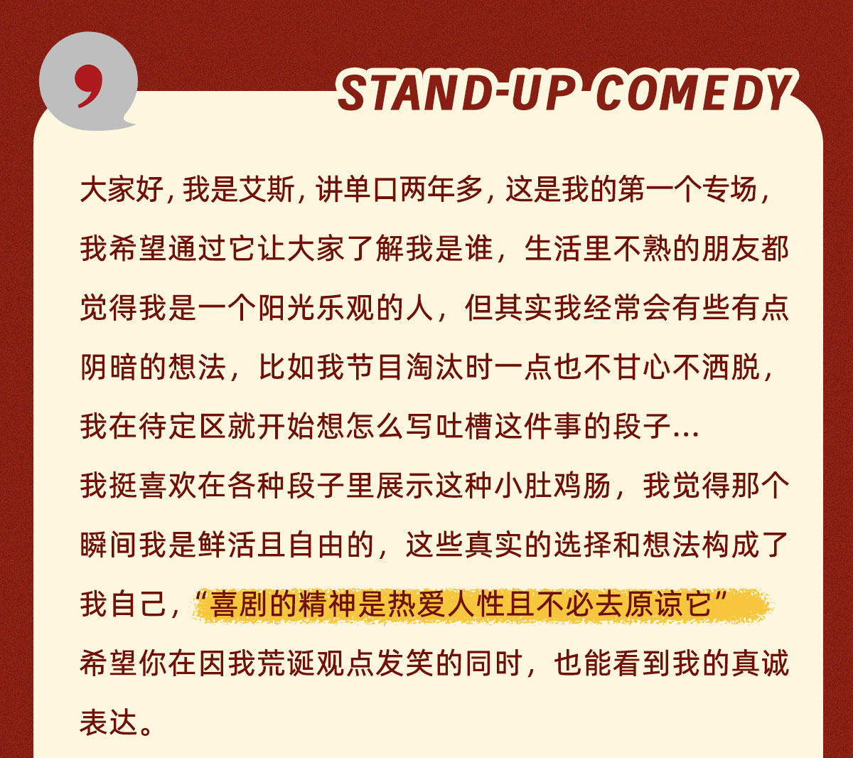 【北京】趣听喜剧x王府井喜悦 | 艾斯单口喜剧专场《我展示》