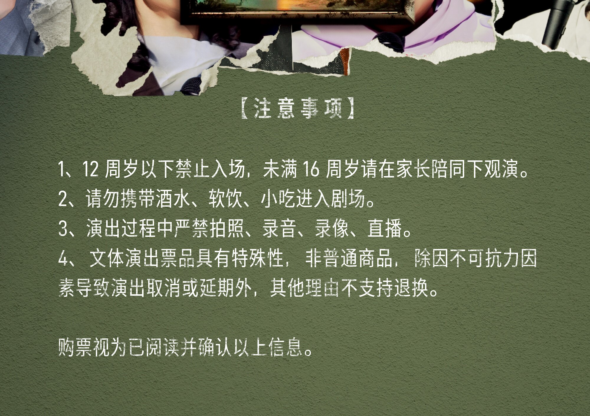 5.票品为有价证券,非普通商品,其背后承载的文化服务具有时效性、稀缺性等特征,不支持退换。如您购票后无法正常观看,还请自行处理。